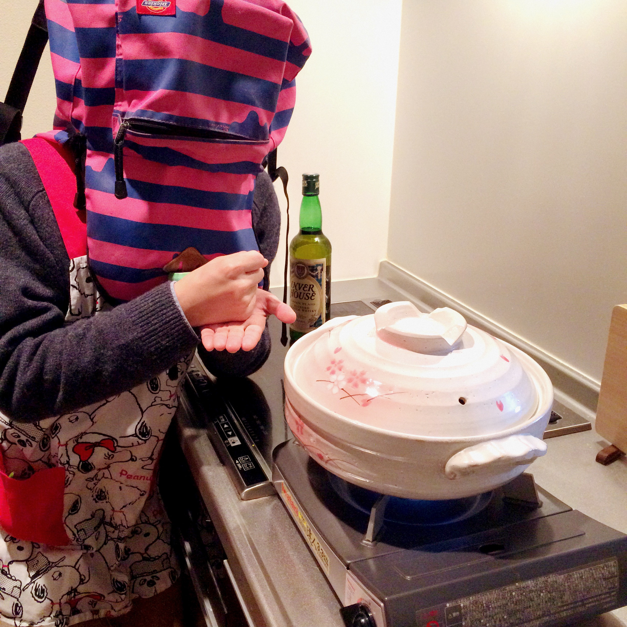 ③さて、鍋の用意が済んだら、カセットコンロを取り出します。もちろん、ガス台があるご家庭はそれでも結構です。